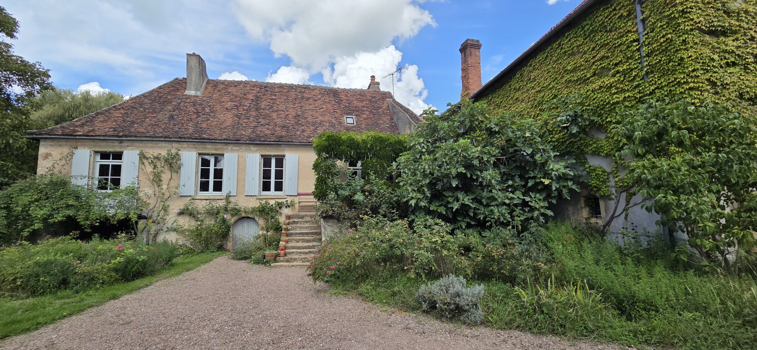 Réf. 2950 – Bourgogne Nord, au coeur de notre belle campagne nivernaise, laissez-vous séduire par le charme bucolique de ce village traversé par l’Yonne et le canal du Nivernais, proche de TANNAY, dans un écrin de verdure. Belle demeure ancienne 134 m², habitable de suite, édifiée en partie sur cave voûtée 34 m² et remise ouverte 27 m². Rez-de-chaussée : entrée sur cuisine 23 m² (pierre à évier, cheminée avec cuisinière à bois), arrière-cuisine (faisant la jonction entre les deux habitations), dégagement avec accès jardin, séjour 29 m² (tomettes, cheminée avec poêle à bois, placard), dégagement-bibliothèque, salle d’eau (douche à l’italienne), WC, une chambre 10 m², bureau 15 m² (ou chambre) avec accès balcon et terrasse. Accès à l’étage par escalier bois, une chambre 17 m² avec WC (tomettes), bureau (tomettes, charpente apparente), grenier mansardé (plancher bois, arrivée d’eau et évacuations). Toiture en petites tuiles de Bourgogne, simple et double vitrage, chauffage bois et électrique. Deuxième habitation 110 m², élevée en partie sur un cellier, chaufferie-atelier 28 m² et une pièce de transition avec évier. En rez-de-rue : entrée, une chambre 14 m² et buanderie 15 m². A mi-étage : dégagement, cuisine avec balcon 9 m², séjour 25 m² (cheminée avec poêle à bois), WC et cabouin. A l’étage : dégagement, une chambre 18 m² avec balcon, salle de bains et grenier au-dessus. Toiture en tuiles mécaniques, chauffage central fuel, simple et double vitrage. Dépendances séparées : étable 28 m², grange 29 m² et écurie 40 m², fenils sur le tout. Remise à l’arrière 21 m², petits toits et poulailler. Très beau terrain 1 929 m², paysagé, arboré, potager, bordé par la rivière et clos. Café-épicerie, restaurant sur place. Localité tous commerces et services à 7,5 km.