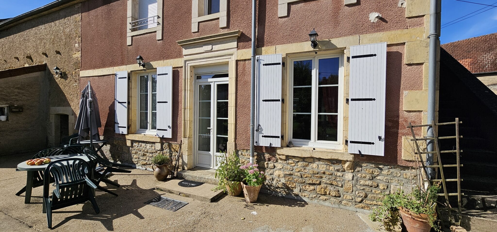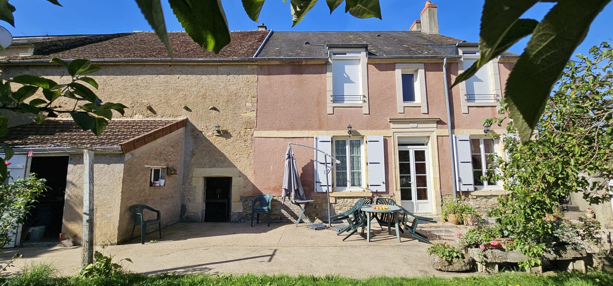 Réf. 2976 – Bourgogne Nord, proche Tannay – BELLE MAISON PIERRE 138 m² habitables, cuisine ouverte sur pièce à vivre 40 m², carrelage, poutres, cheminée-insert, accès jardin, dégagement, salle d’eau, WC, deux chambres de 20 m². A l’étage, palier, salle d’eau-WC 5 m², couloir, dressing, deux chambres 12 m² et 16 m², parquet, grenier 22 m², tomettes. Dépendances à la suite : cellier, cuisine d’été, écurie 36 m², cave, grange-chaufferie 21 m² (chaudière fioul récente, cuve à fioul). Double vitrage, chauffage central fioul.