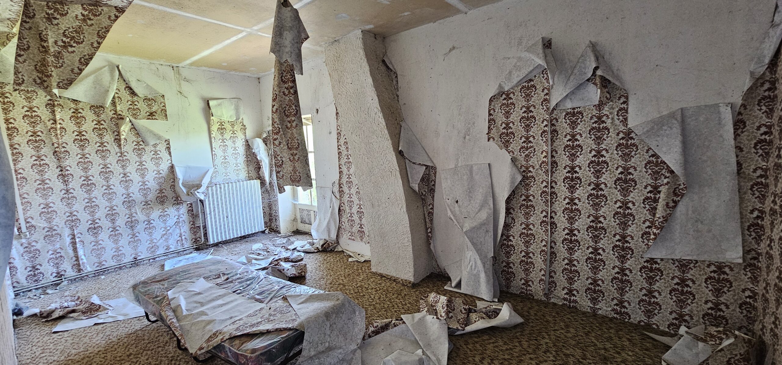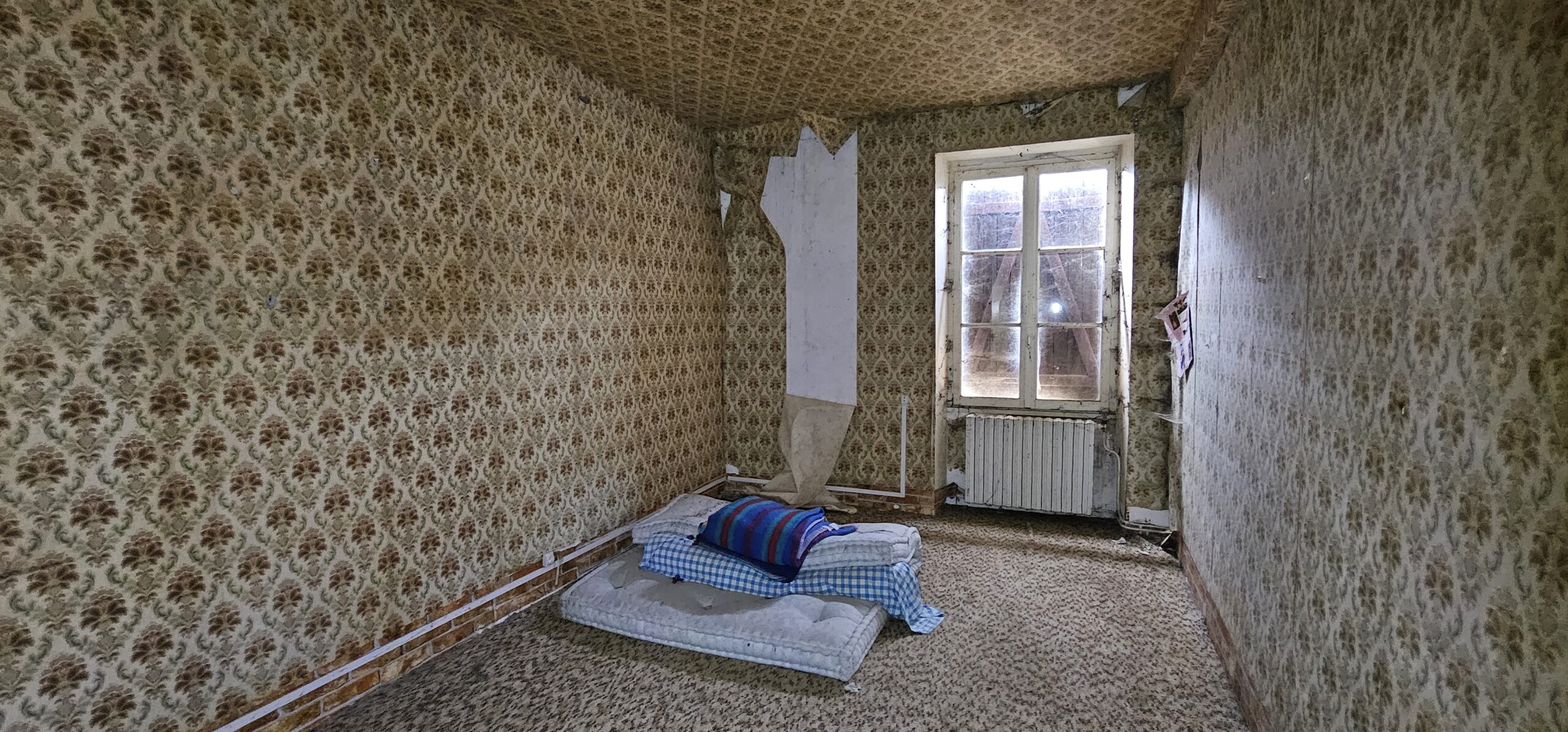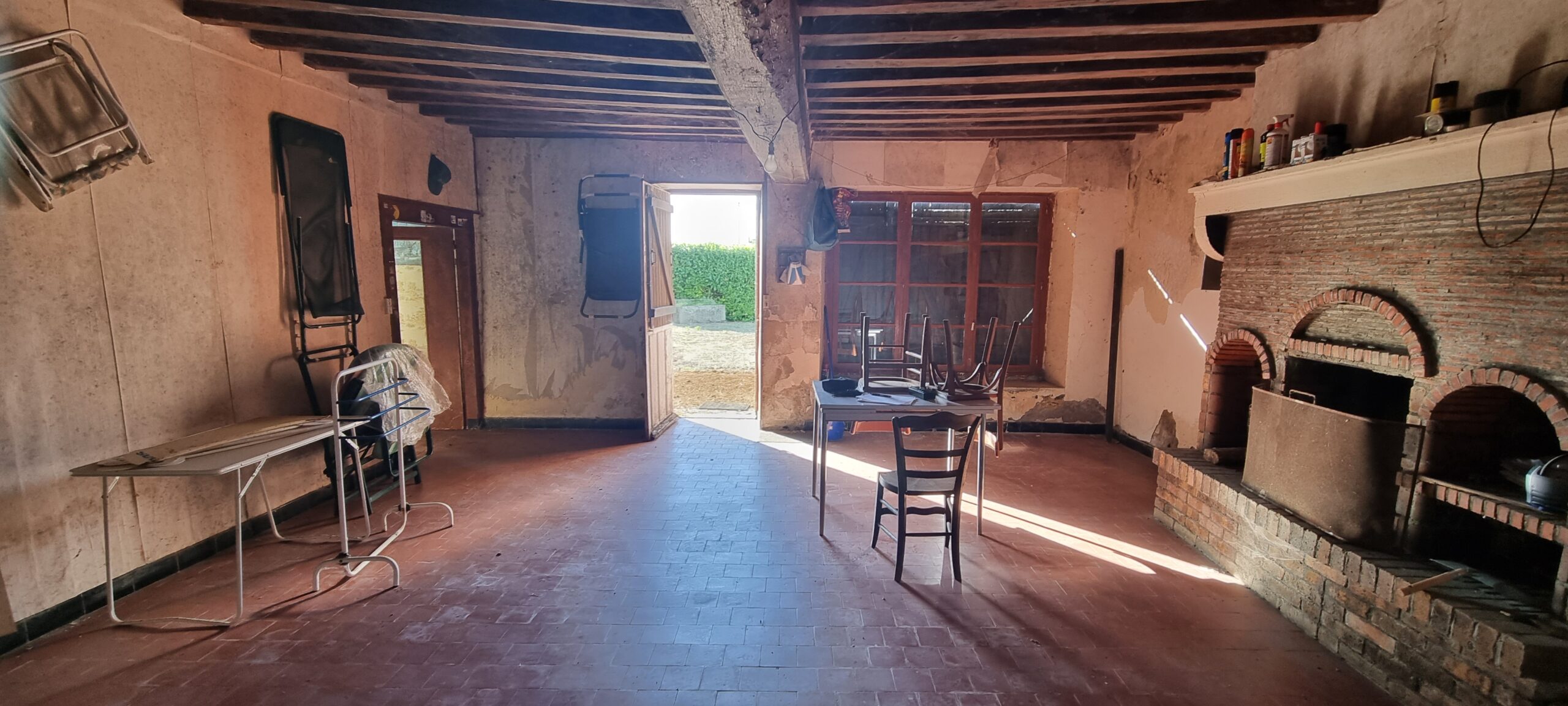 Maison d’habitation 211 m² à rénover entièrement (intérieur tomettes, poutres, cheminées) : entrée 20 m², salle à manger 30 m², cuisine avec sortie sur jardin, salon 33 m², salle de bains avec douche 10 m², WC. Accès à l’étage par bel escalier bois : cinq chambres (17 m², 14 m², 18 m², 13 m² et 33 m²). Grenier au-dessus. Cave 19 m². Pas de chauffage, simple vitrage, assainissement non conforme, plomberie et électricité à reprendre.