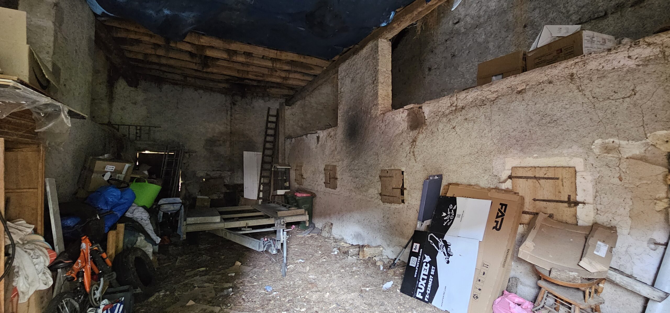 À l’étage, accessible par un escalier extérieur en pierre, grenier 97 m² et 36 m².