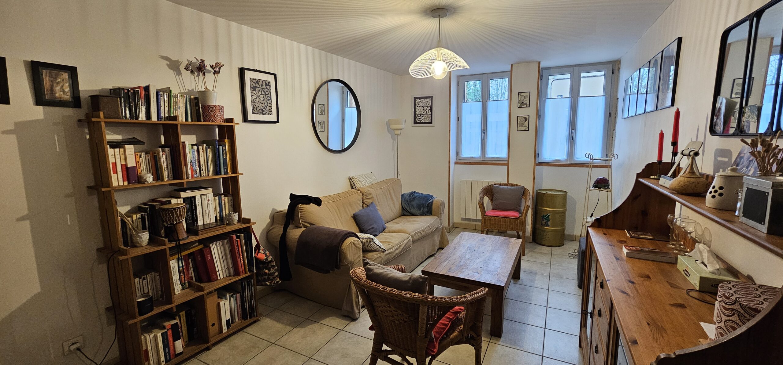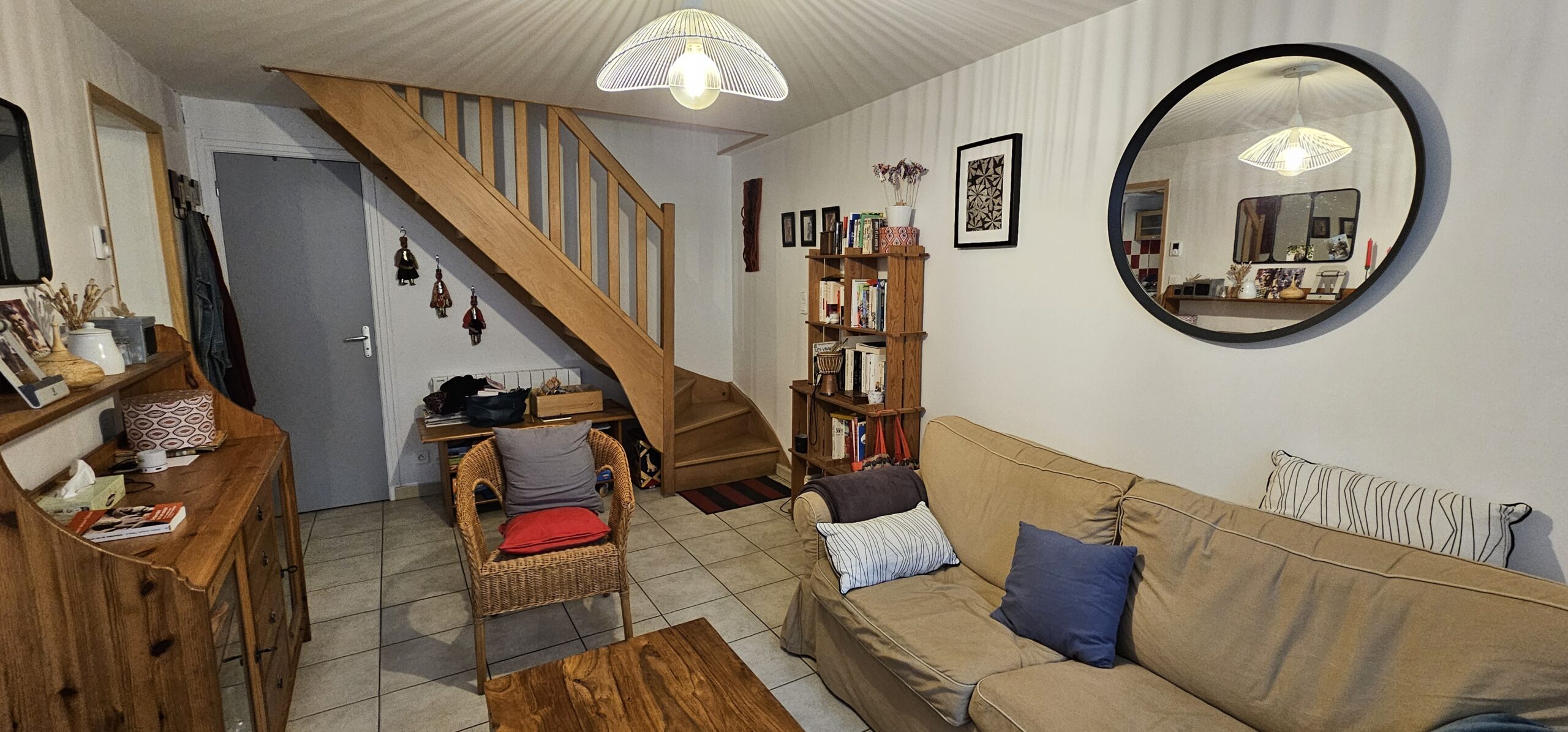 Au rez-de-chaussée : une pièce de vie chaleureuse avec cuisine ouverte 23 m², accès direct au jardin à l’arrière, idéale pour les beaux jours. Un salon 15 m², une salle d’eau avec WC.