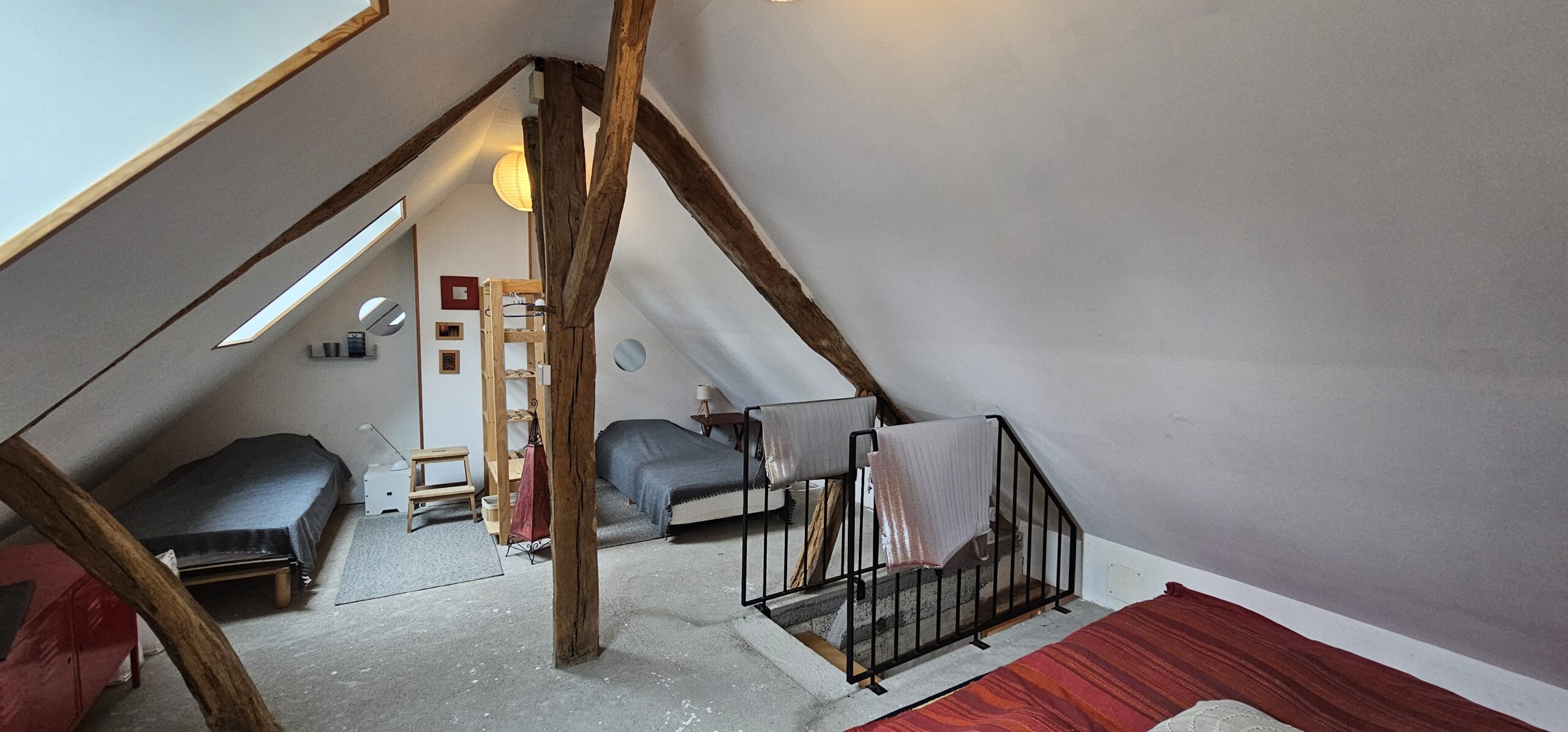 A l’étage : le palier dessert une seconde salle d’eau avec WC, deux chambres, ainsi qu’une pièce de 10 m² pouvant faire office de bureau, de chambre, avec rangements.