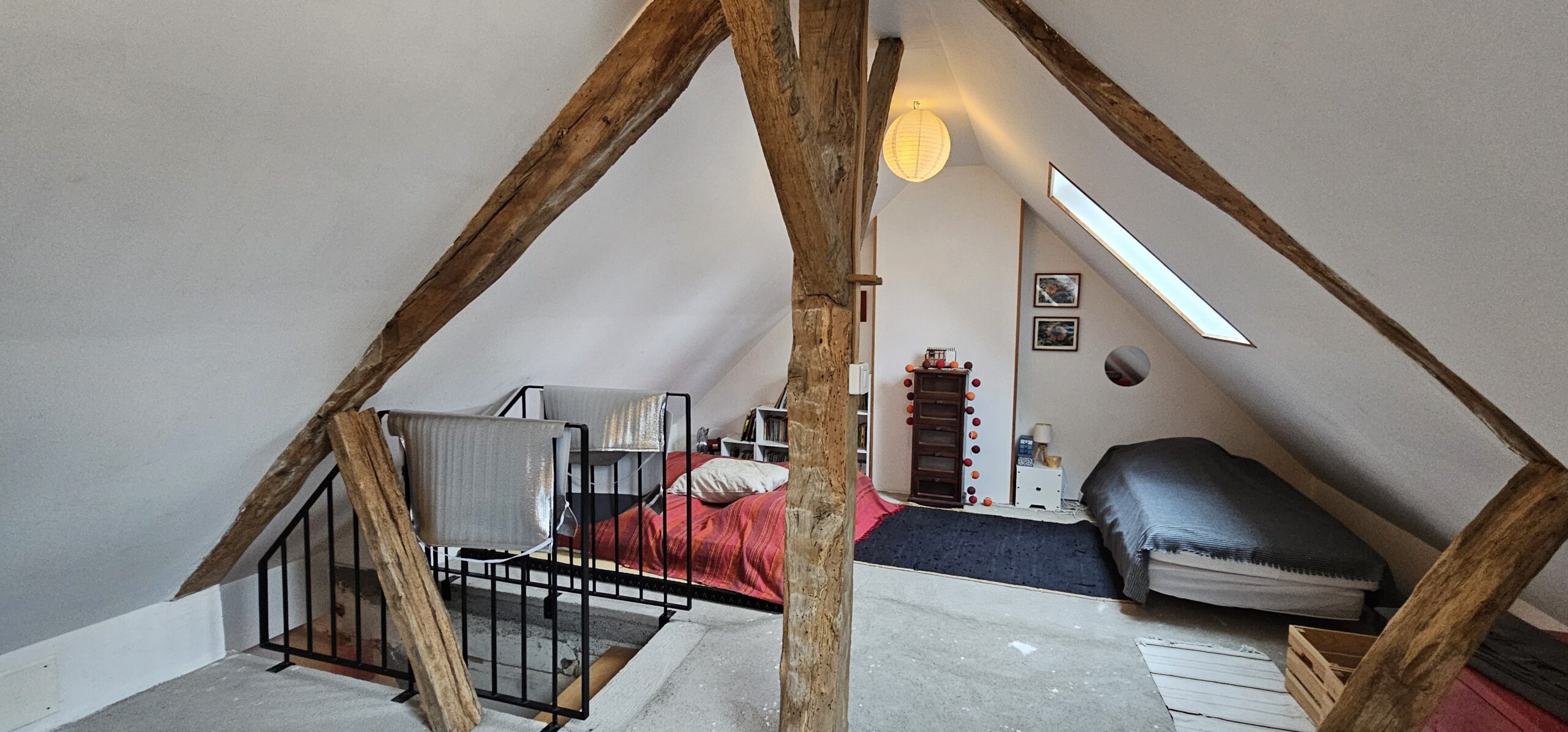 Au deuxième étage : une chambre mansardée de 11,70 m². Cette pièce peut être aménagée selon vos besoins.