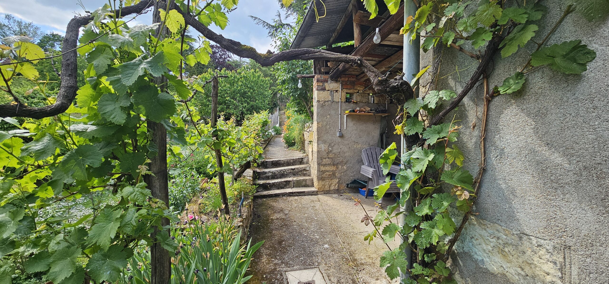 Cour sans vis-à-vis, beau jardin clos et arboré sur 298 m².