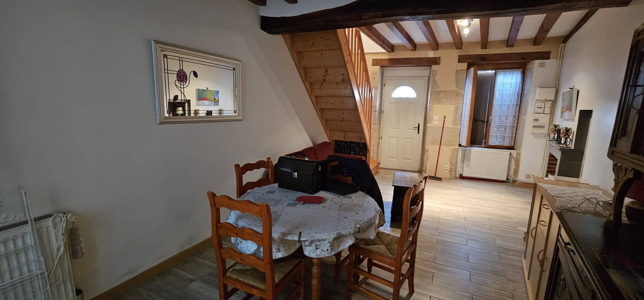 Réf. 2912 – Au centre de Varzy, à deux pas des commerces, maison de bourg 54 m² habitables. Entrée sur pièce à vivre 22 m², salle d’eau-WC, cuisine 12 m². A l’étage : palier, WC, deux pièces mansardées à usage de chambre (8m² et 7.50 m²) dont une avec terrasse, cour sur le coté.