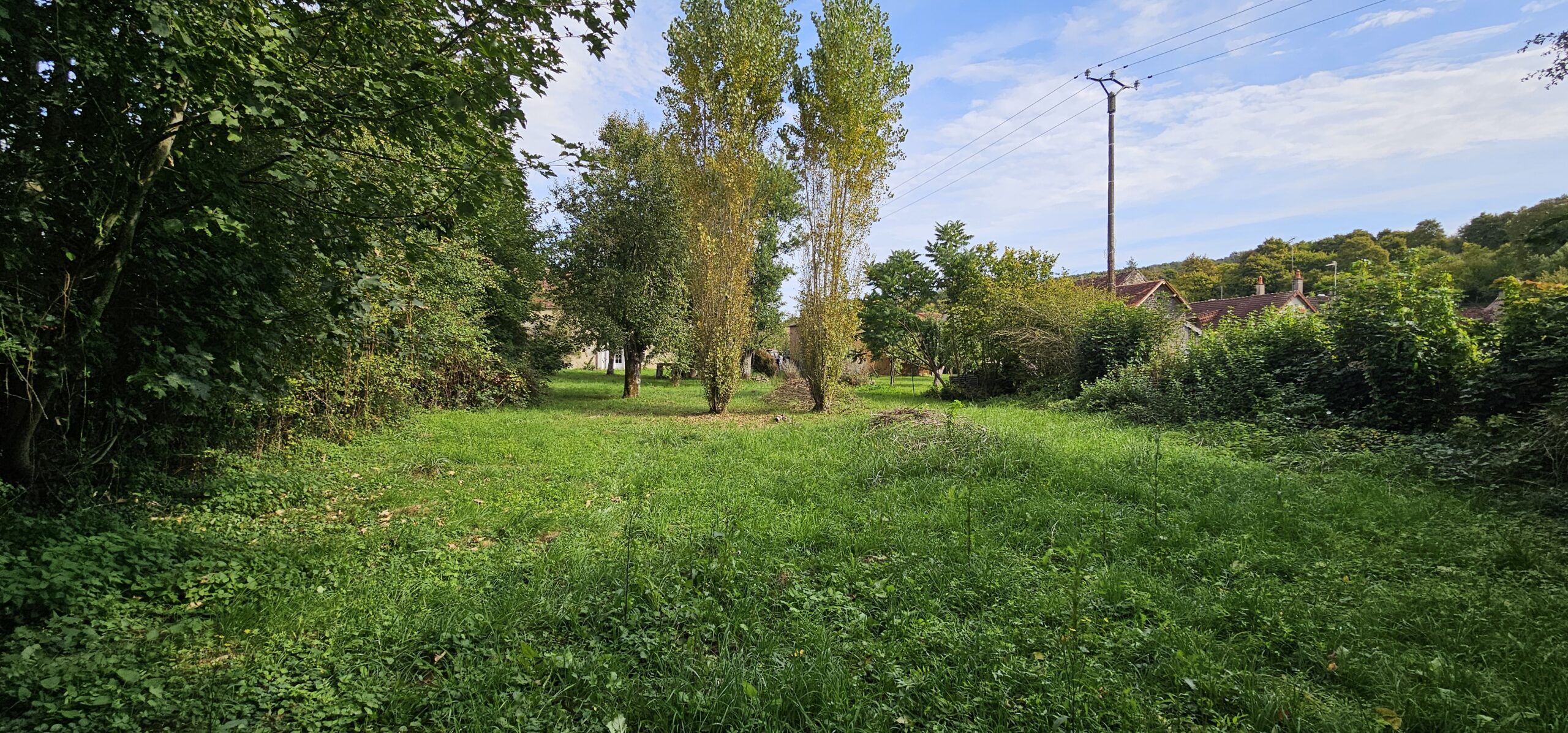 L’ ensemble sur un terrain arboré et clos de 1 215 m², bordé par un cours d’eau.