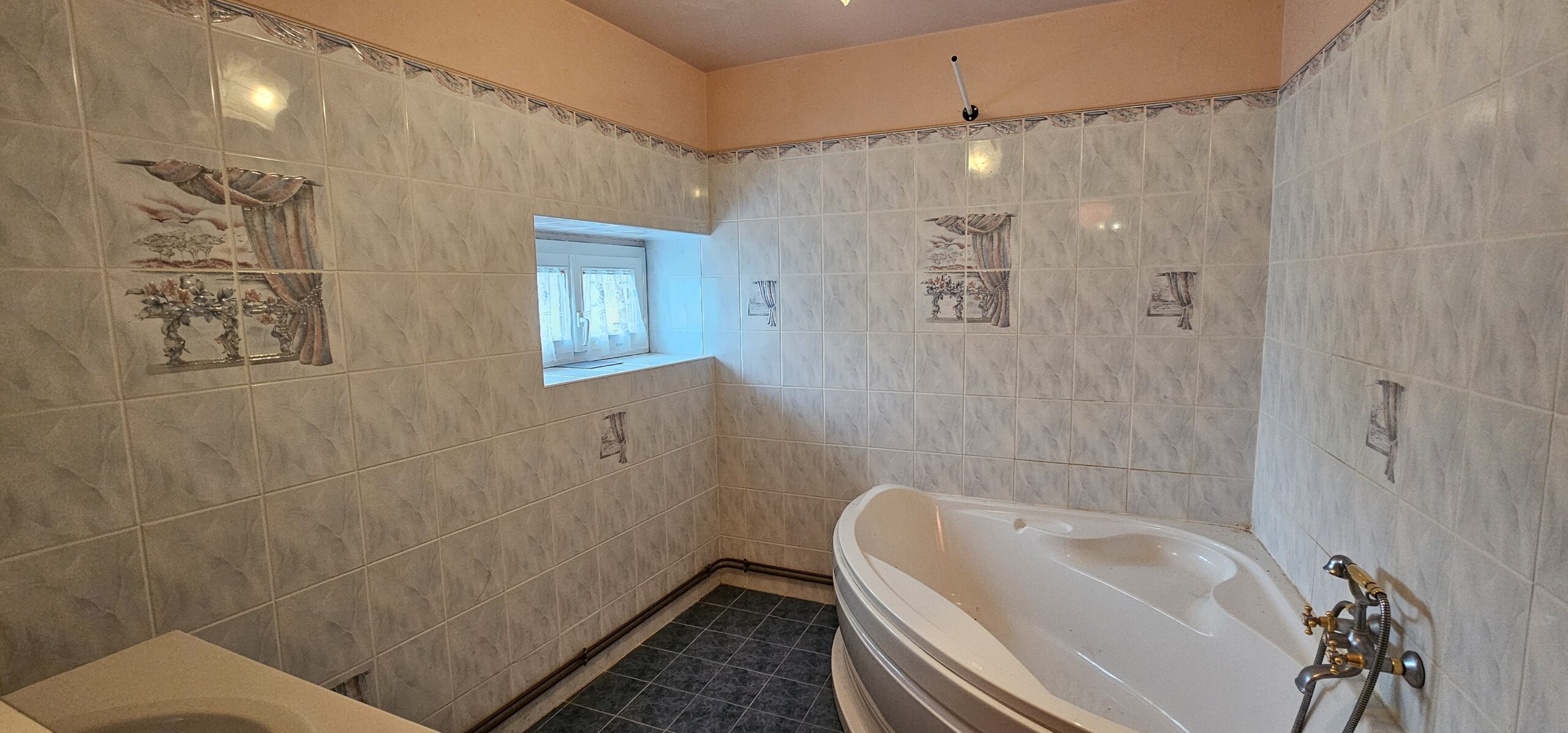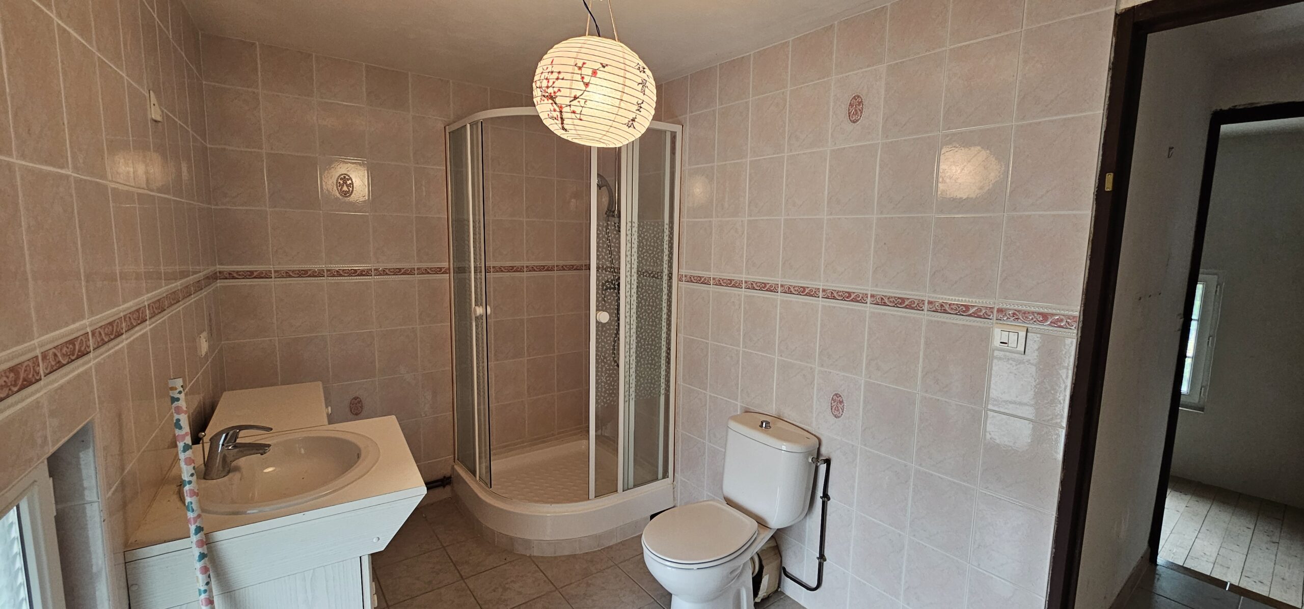 À l’étage, une grande pièce palière 39 m² dessert trois chambres (11 m², 10 m² et 14 m²), une salle d’eau avec WC.