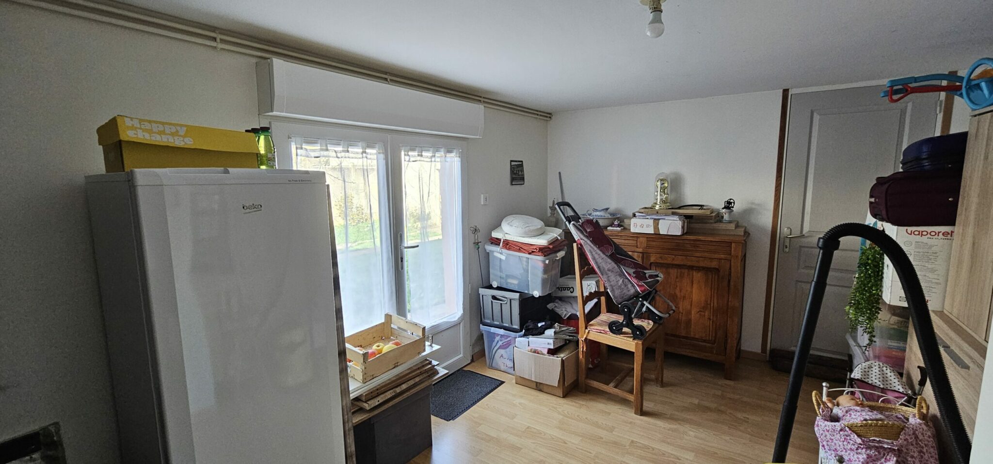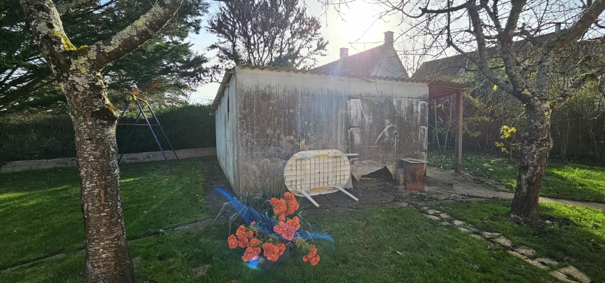 Réf. 2966 – Bourgogne Nord, dans hameau proche d’ETAIS LA SAUVIN, au calme et habitable de suite, PAVILLON de plain-pied, sur vide sanitaire, entrée, cuisine aménagée 7,30 m² ouverte sur salle à manger 17 m² (poêle à bois, accès terrasse) et salon 13 m², deux chambres 10 m² et 12 m² (parquet flottant), salle d’eau-WC, bureau 12,50 m² (ou chambre), chaufferie avec accès extérieur. Combles perdus au-dessus. Double vitrage avec volets roulants électriques, chauffage central fioul et poêle à bois. Construction séparée en plaques fibrociment à usage d’atelier 29 m² avec cave en-dessous et garage en parpaings de 39 m². Terrain 977 m² clos, bel environnement.