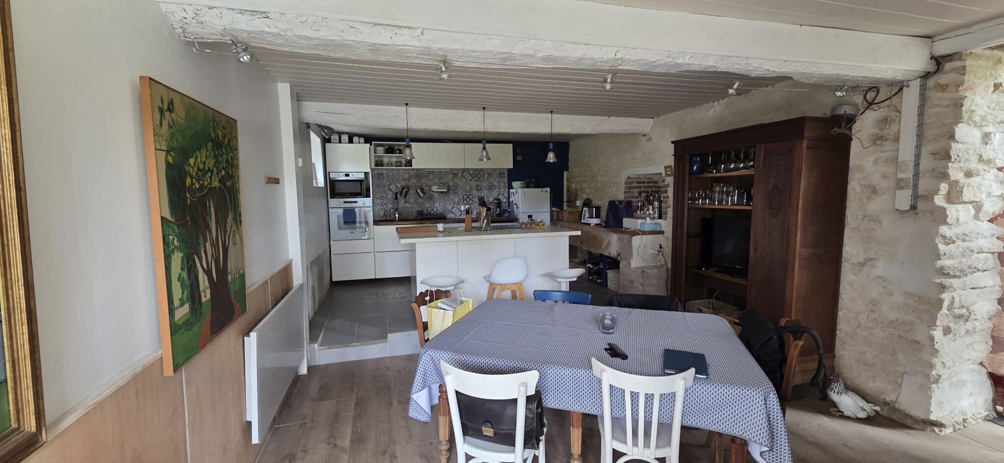A la suite, remise 13 m², étable à usage d’atelier 30 m², fenils au-dessus.