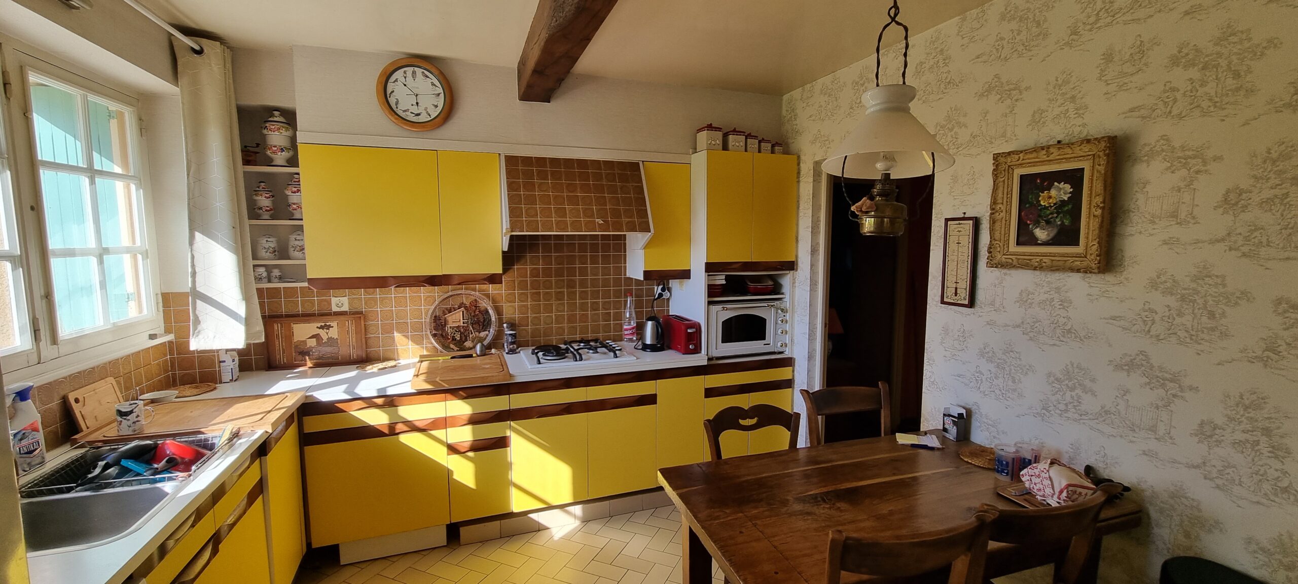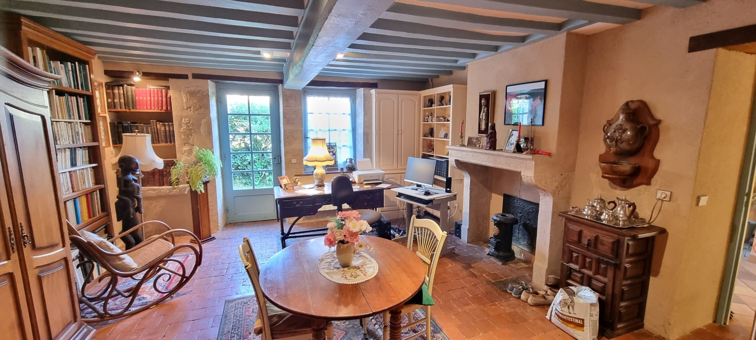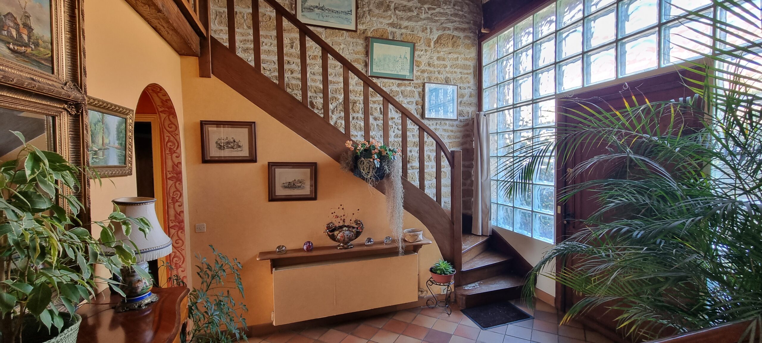 Maison avec du cachet avec prestations soignées avec ses poutres apparentes et ses tomettes, cadre de vie agréable.