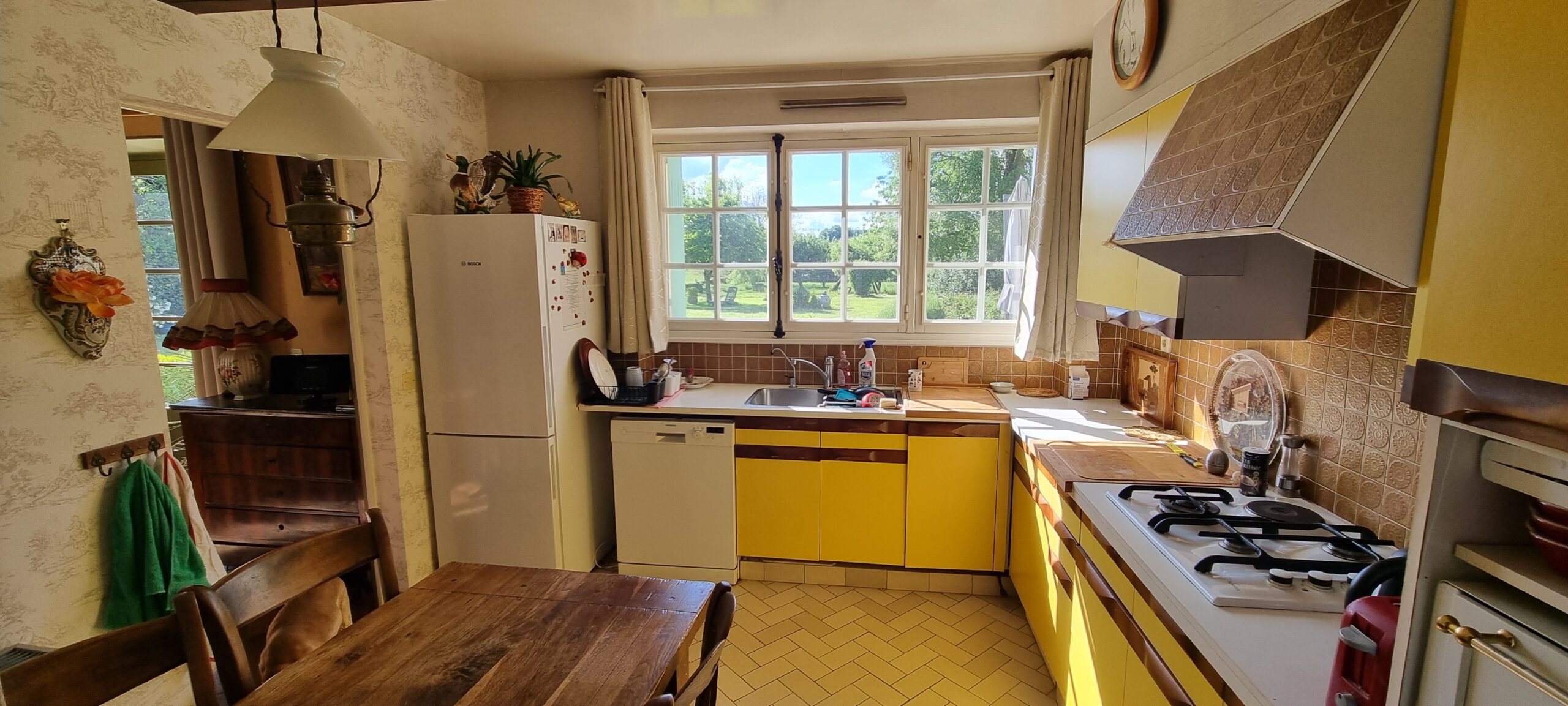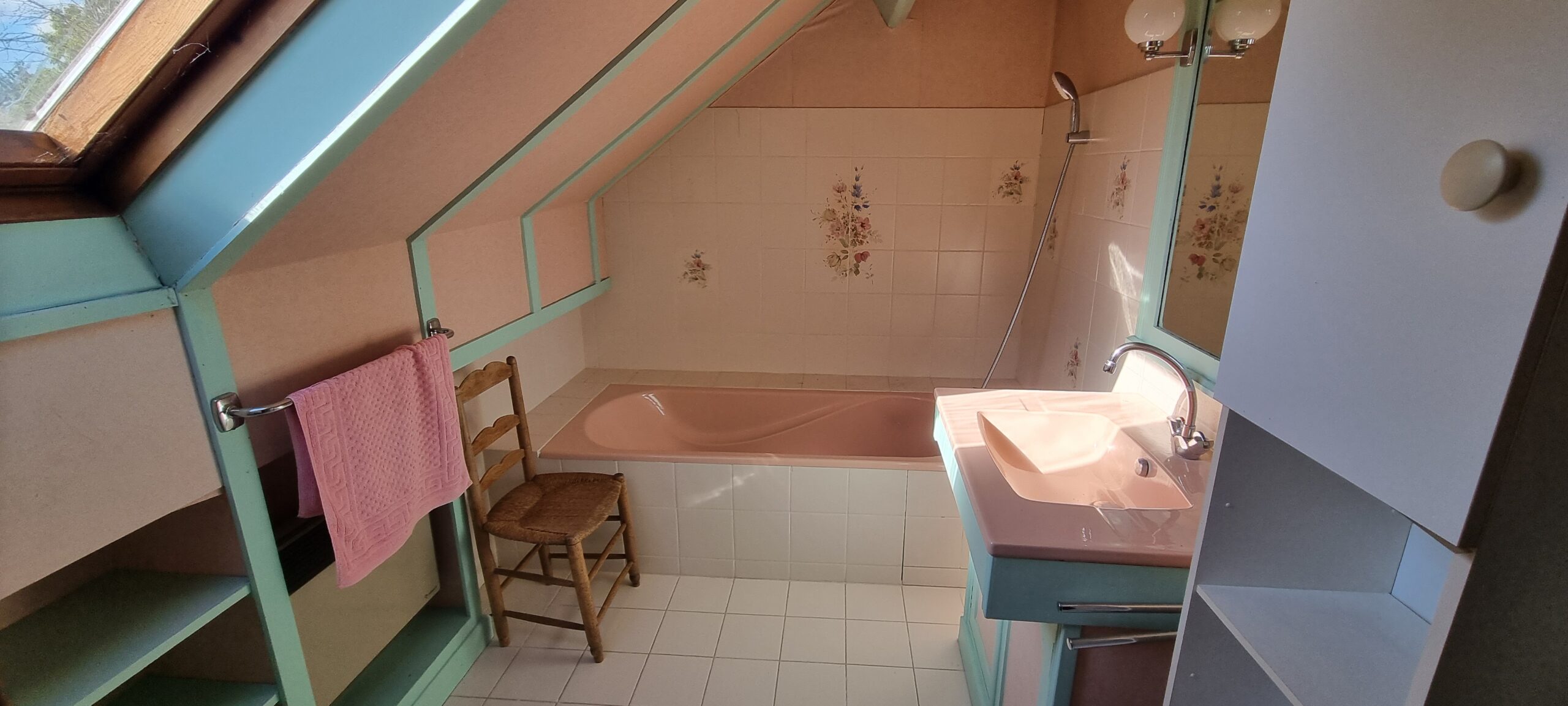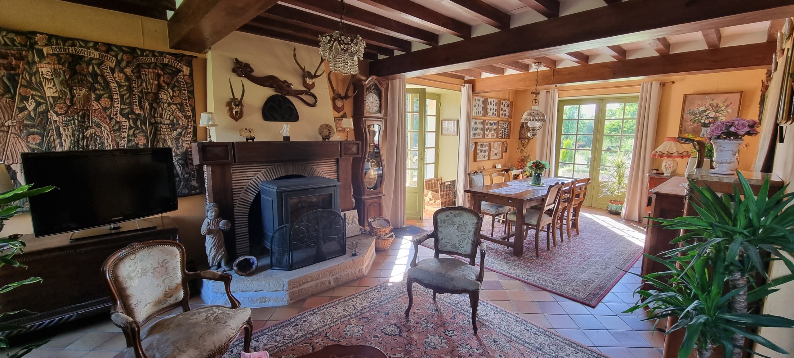 Maison avec du cachet avec prestations soignées avec ses poutres apparentes et ses tomettes, cadre de vie agréable.