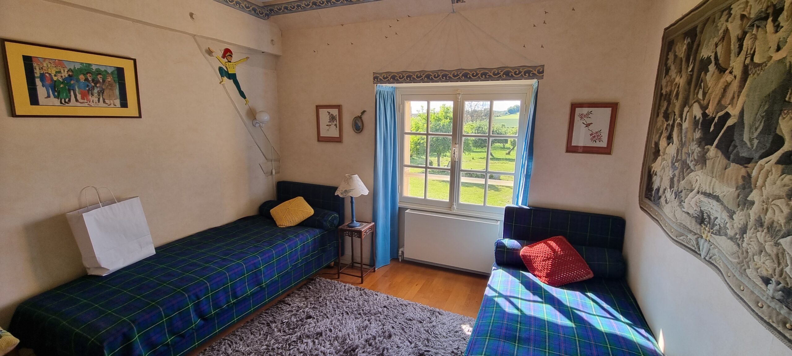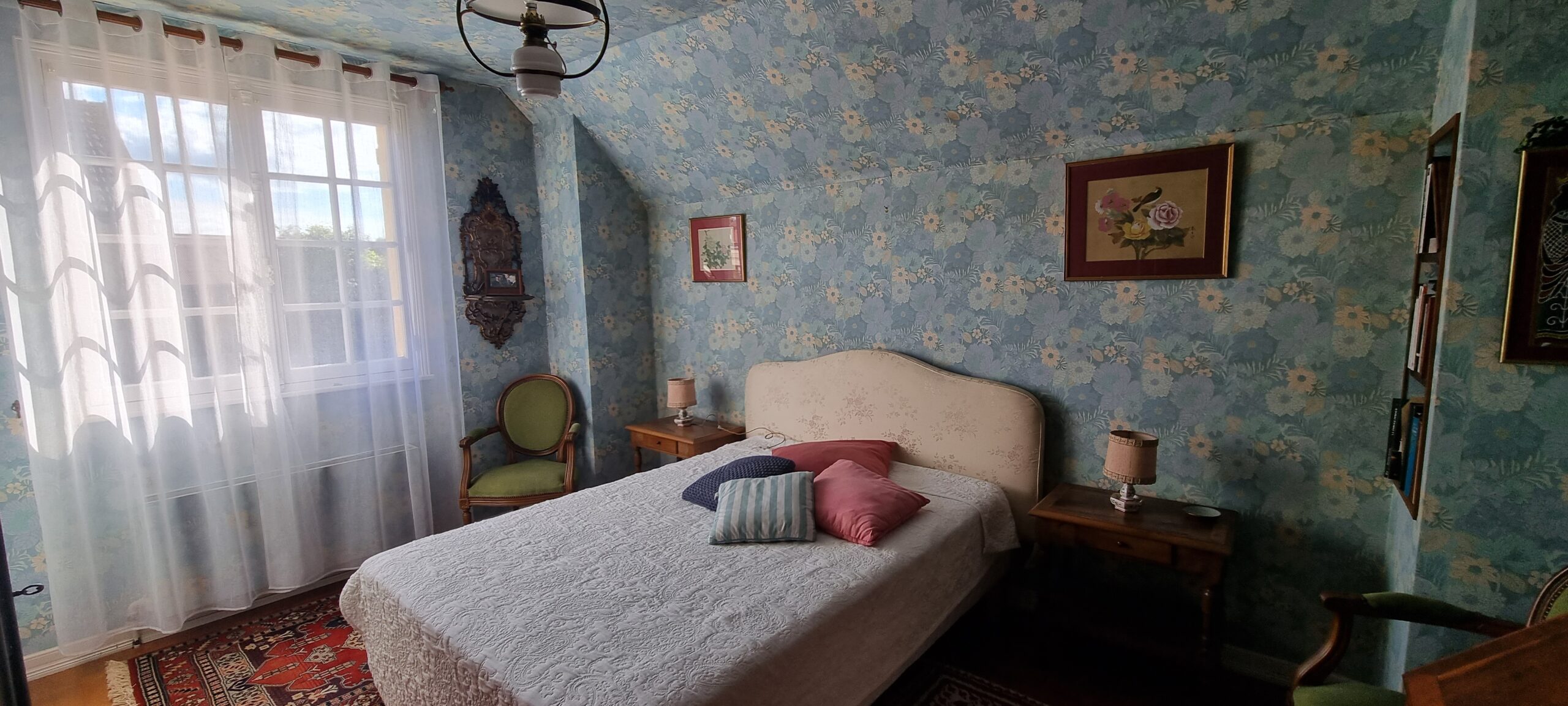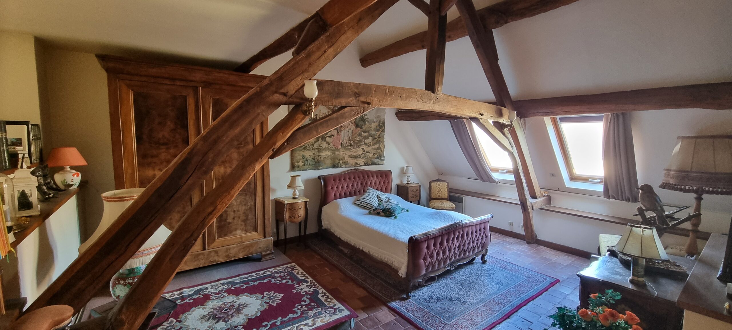 Au rez-de-chaussée : Entrée-séjour lumineux 39 m², dégagement, Wc, cuisine aménagée 10 m², salle à manger 25 m² (cheminée), cuisine d’été-buanderie 12 m² avec sortie sur terrasse. Au premier étage : palier 5 m², couloir, une petite chambre, une chambre parentale 24 m² avec salle de bains 5 m², une chambre 14 m² avec salle d’eau attenante, une chambre 12 m², une autre salle d’eau 5m², Wc. Au deuxième étage : grenier mansardé de 40 m² au sol. Cour, patio de 23 m², l’ensemble sur terrain clos de 2 600 m² de terrain avec vue dégagée au calme.